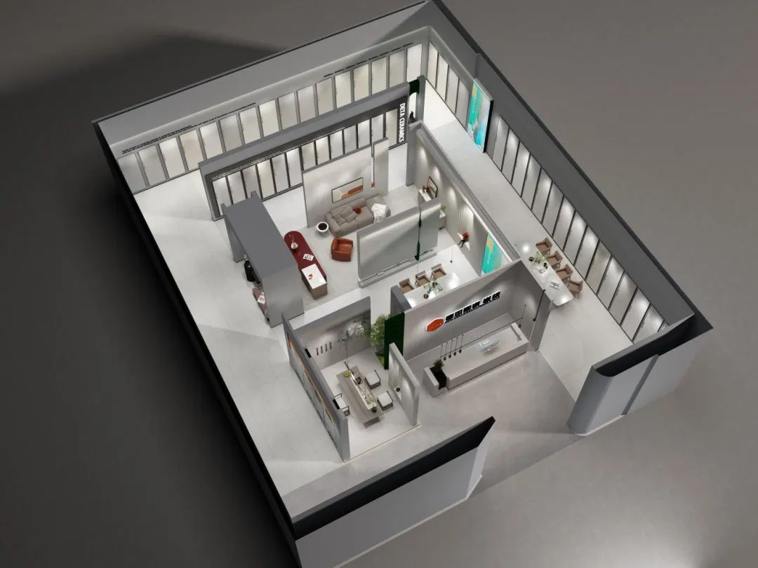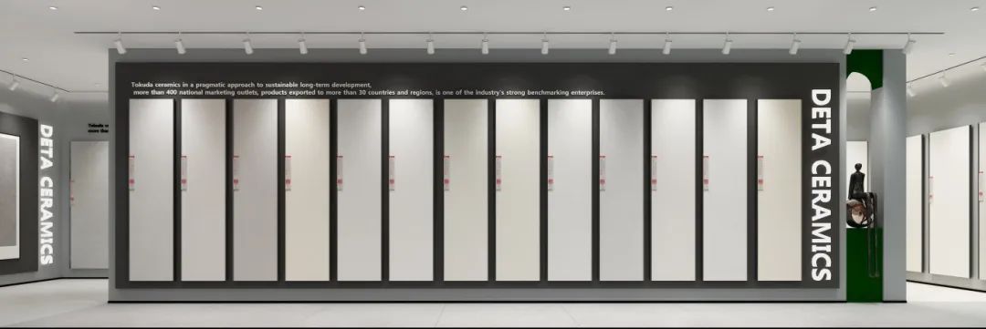 德田陶瓷全新終端SI形象標(biāo)準(zhǔn),將展廳的動(dòng)線布局與現(xiàn)代美學(xué)手法相結(jié)合,在燈光的映襯下,通過明暗對比分割空間,利用空間分隔和材料元素的構(gòu)型立意,將產(chǎn)品融入到空間的細(xì)膩表達(dá)中,增強(qiáng)客戶的體驗(yàn)感。