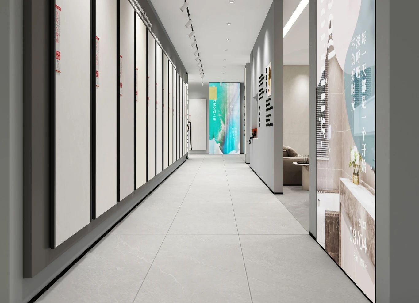 同時(shí)我們以前瞻性思維、多樣化的展陳方式,根據(jù)不同產(chǎn)品的特點(diǎn)、紋理、質(zhì)感、規(guī)格劃分出相應(yīng)的展示區(qū)域,讓進(jìn)店客戶短時(shí)間內(nèi)高效發(fā)現(xiàn)和體驗(yàn)到產(chǎn)品的魅力。